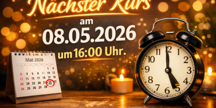 Hier findest du eine Übersicht aller kommenden Kurstermine. Sichere dir schnell deinen Platz – die Teilnehmerzahl ist begrenzt!